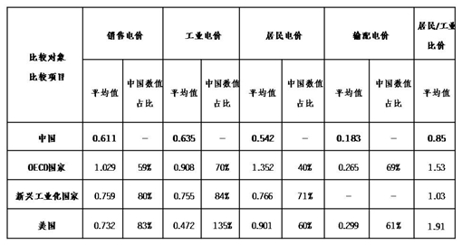 從(cong)(cong)居民(min)/工(gong)業比價(jia)(jia)關(guan)系看(kan),新興工(gong)業化(hua)國(guo)(guo)家(jia)(jia)的(de)居民(min)電(dian)價(jia)(jia)平均(jun)為工(gong)業的(de)1.03倍,低于OECD國(guo)(guo)家(jia)(jia)的(de)均(jun)值。從(cong)(cong)以上數據可以看(kan)出,新興工(gong)業化(hua)國(guo)(guo)家(jia)(jia)銷(xiao)售電(dian)價(jia)(jia)均(jun)值低于OECD國(guo)(guo)家(jia)(jia)、高于我國(guo)(guo)。