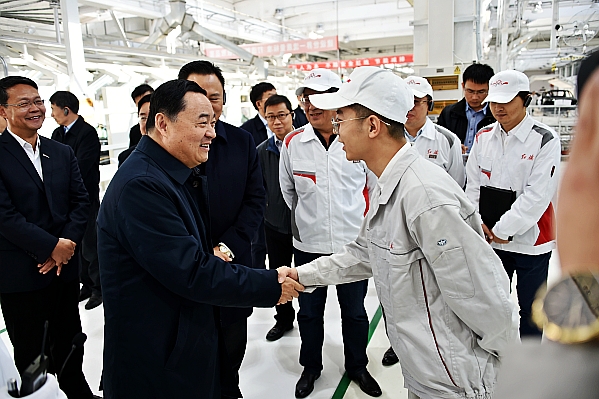 郝鵬首(shou)先來到中國(guo)(guo)一(yi)(yi)(yi)汽(qi)(qi),深(shen)入(ru)企業(ye)(ye)(ye)展(zhan)館、紅(hong)旗工(gong)廠(chang)、一(yi)(yi)(yi)汽(qi)(qi)-大(da)眾公(gong)司、電子實驗室、研(yan)發(fa)總院等調研(yan),認真(zhen)聽取企業(ye)(ye)(ye)艱苦(ku)奮斗的創業(ye)(ye)(ye)史及改革發(fa)展(zhan)最新進(jin)展(zhan),深(shen)入(ru)黨建活動室了解企業(ye)(ye)(ye)黨建工(gong)作成效,調研(yan)新產品及研(yan)發(fa)創新體(ti)系,體(ti)驗自動駕(jia)駛汽(qi)(qi)車,對企業(ye)(ye)(ye)大(da)刀闊(kuo)斧抓改革、再創業(ye)(ye)(ye)的干(gan)勁激情給(gei)予充分肯定。郝鵬指(zhi)出,中國(guo)(guo)一(yi)(yi)(yi)汽(qi)(qi)開啟了我國(guo)(guo)汽(qi)(qi)車工(gong)業(ye)(ye)(ye)的振興史,也(ye)探索了一(yi)(yi)(yi)條民族工(gong)業(ye)(ye)(ye)發(fa)展(zhan)之路,其成長發(fa)展(zhan)始(shi)終(zhong)同黨和國(guo)(guo)家命(ming)運緊密(mi)相連,要(yao)(yao)始(shi)終(zhong)堅守“產業(ye)(ye)(ye)報國(guo)(guo)、工(gong)業(ye)(ye)(ye)強國(guo)(guo)”的初心使命(ming),把“紅(hong)旗”扛(kang)起(qi)來,為我國(guo)(guo)經濟(ji)社會發(fa)展(zhan)作出更大(da)貢獻。一(yi)(yi)(yi)汽(qi)(qi)能發(fa)展(zhan)到今天,靠的就是黨的領導,要(yao)(yao)堅持(chi)黨建服務生產經營(ying)不(bu)偏離,以(yi)黨的建設新成效推(tui)動企業(ye)(ye)(ye)新發(fa)展(zhan)。