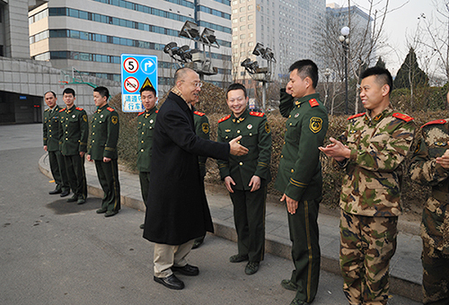 2月19日是農歷大(da)年初一。上午,受國資(zi)委(wei)(wei)主任、黨委(wei)(wei)書(shu)記張毅委(wei)(wei)托(tuo),委(wei)(wei)黨委(wei)(wei)委(wei)(wei)員、秘書(shu)長(chang)閻(yan)曉峰代表委(wei)(wei)黨委(wei)(wei),先后到委(wei)(wei)西(xi)便(bian)門和安定門辦公區機關值班室、中控室、武(wu)警駐地和餐(can)飲、物業等后勤服務部門,看望慰問堅守在工(gong)作崗(gang)位的值班人(ren)員、武(wu)警戰士和后勤服務保障人(ren)員,向他們致以(yi)節日的問候和良好的祝(zhu)愿(yuan)!