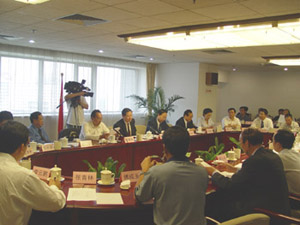 李榮融介紹了《企業國有資產監督管理暫行條例》公布實施一周年以來的情況,李毅中主持會議。中國航空工業第二集團公司、中石化、中國電信、中國五礦集團、中國通用技術集團、國家電網公司、中海油集團等七家企業的代表匯報了《企業國有資產監督管理暫行條例》公布實施一周年來企業執行情況,并提出了改進意見。