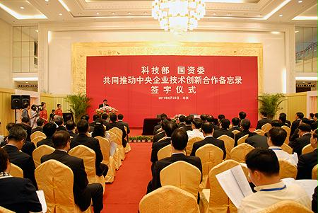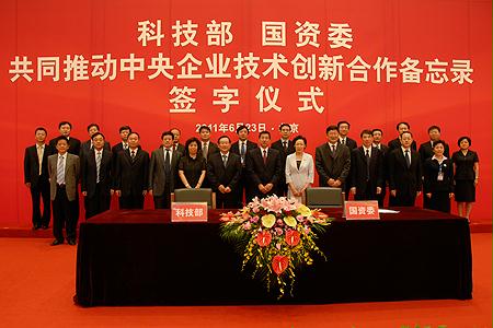2011年6月23日,科技(ji)(ji)部(bu)、國(guo)(guo)(guo)(guo)資(zi)委(wei)在(zai)北京會議(yi)中心(xin)舉行了共同(tong)推動中央(yang)企業(ye)技(ji)(ji)術(shu)創新合作備(bei)忘錄簽(qian)字儀(yi)(yi)式(shi)(shi)(shi)。全國(guo)(guo)(guo)(guo)政協副主席(xi)、科技(ji)(ji)部(bu)部(bu)長(chang)(chang)萬(wan)鋼和國(guo)(guo)(guo)(guo)資(zi)委(wei)主任王勇分別在(zai)簽(qian)字儀(yi)(yi)式(shi)(shi)(shi)上致辭,科技(ji)(ji)部(bu)副部(bu)長(chang)(chang)陳小婭和國(guo)(guo)(guo)(guo)資(zi)委(wei)副主任黃丹華代表兩部(bu)門簽(qian)字。科技(ji)(ji)部(bu)、國(guo)(guo)(guo)(guo)資(zi)委(wei)相關司局負責同(tong)志(zhi)出(chu)席(xi)見證簽(qian)字儀(yi)(yi)式(shi)(shi)(shi)。參加(jia)簽(qian)字儀(yi)(yi)式(shi)(shi)(shi)的(de)還(huan)有(you)部(bu)分中央(yang)企業(ye)的(de)主要負責同(tong)志(zhi)。