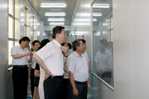 調研人員先后參觀了光纖面板研發生產基地、中空玻璃實驗室、中國建材檢驗認證中心及建材總院展室,中國建筑材料集團公司總經理兼建材總院院長姚燕同志介紹了建材總院的改革發展情況。邵寧和李學勇對建材總院的科研與改革發展情況給予了充分肯定,并對今后發展提出了要求。