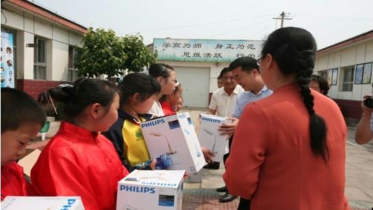為孩子們送上(shang)臺燈(deng)等學習用品