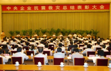 大會表彰了國家電網公司四川省電力公司等199個“2008年中央企業抗震救災先進集體”、中國東方電氣集團公司東方汽輪機有限公司主機一分廠廠長喻剛等271名“2008年中央企業抗震救災先進個人”、中國水利水電建設集團公司水電十局醫院黨委等136個“2008年中央企業抗震救災先進基層黨組織”、中國化工集團公司德陽昊華清平磷礦有限公司黨委書記、董事長、總經理向平等178名“2008年中央企業抗震救災優秀共產黨員”。國家電網四川省電力公司總經理朱長林、中國東方電氣集團東方汽輪機有限公司副總經理肖珉代表受表彰的集體和個人在會上作了發言。中央企業有關負責同志及部分受表彰的企業代表總計約450人參加了大會。