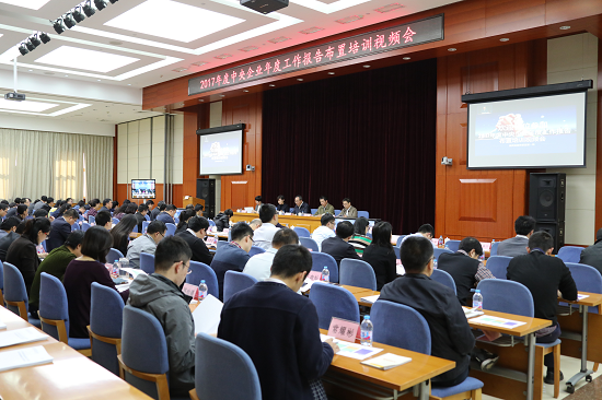 2017年(nian)(nian)(nian)11月2日,國資委組(zu)織(zhi)召開2017年(nian)(nian)(nian)度(du)中央企(qi)業(ye)(ye)年(nian)(nian)(nian)度(du)工(gong)(gong)作(zuo)(zuo)(zuo)報(bao)告(gao)布(bu)置培訓視頻會議。監督(du)一局局長(chang)禾(he)云同(tong)志作(zuo)(zuo)(zuo)會議講(jiang)話,總(zong)結(jie)了2016年(nian)(nian)(nian)度(du)報(bao)告(gao)工(gong)(gong)作(zuo)(zuo)(zuo)成績(ji),部署了2017年(nian)(nian)(nian)度(du)企(qi)業(ye)(ye)年(nian)(nian)(nian)度(du)工(gong)(gong)作(zuo)(zuo)(zuo)報(bao)告(gao)重點任務(wu),對(dui)做好企(qi)業(ye)(ye)年(nian)(nian)(nian)度(du)工(gong)(gong)作(zuo)(zuo)(zuo)報(bao)告(gao)提出具體要求。國家(jia)(jia)電網公司、中國寶武鋼(gang)鐵集(ji)團(tuan)有限公司等2家(jia)(jia)企(qi)業(ye)(ye)作(zuo)(zuo)(zuo)了交(jiao)流(liu)發(fa)言,中國中車(che)集(ji)團(tuan)公司、中國黃金集(ji)團(tuan)公司等2家(jia)(jia)企(qi)業(ye)(ye)作(zuo)(zuo)(zuo)了書面交(jiao)流(liu)。監督(du)一局有關同(tong)志講(jiang)解了年(nian)(nian)(nian)度(du)報(bao)告(gao)的格式文本編(bian)報(bao)要求和(he)試用軟件。