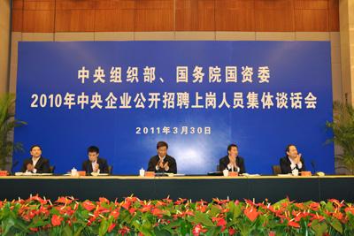 3月30日,中央組織部、國(guo)務院(yuan)國(guo)資委(wei)召開2010年中央企(qi)(qi)業(ye)(ye)公開招聘高管人(ren)員(yuan)和海(hai)外(wai)人(ren)才集體(ti)(ti)談話會(hui)。中共中央政(zheng)治局委(wei)員(yuan)、中央書(shu)記處書(shu)記、中組部部長(chang)李源(yuan)潮指出,要(yao)進一步深化國(guo)有企(qi)(qi)業(ye)(ye)人(ren)事(shi)制度改革,大(da)力吸(xi)引海(hai)內(nei)外(wai)優(you)秀人(ren)才,營造有利于人(ren)才發揮作(zuo)用的體(ti)(ti)制機制和政(zheng)策環境,為(wei)做強做優(you)國(guo)有企(qi)(qi)業(ye)(ye)提供(gong)人(ren)才支撐。