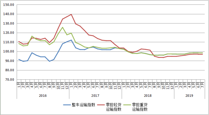 2019年7月(yue)份(fen),由(you)中(zhong)國物流與采購聯(lian)合(he)會和林安物流集(ji)團聯(lian)合(he)調(diao)查的中(zhong)國公(gong)路物流運價指數為98.1點(dian),與上(shang)月(yue)基本持平,比去年同期回升0.7%。月(yue)內(nei)各(ge)周指數運行平緩,波動幅度在980點(dian)至981點(dian)之間。