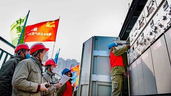圖二 國網武漢供電公司員(yuan)工在雷神山醫院進行用電巡查