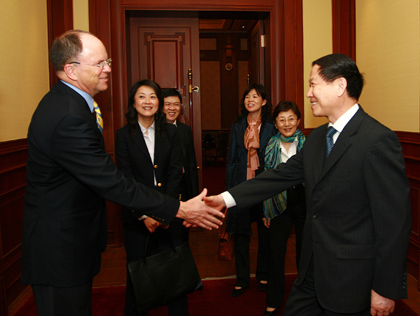3月24日,國務院國資委主任李榮融在北京會見了美國德勤會計師事務所首席執行官奎勵杰一行。雙方就世界經濟發展趨勢、美國次級按揭貸款危機、中國國有企業改革、中國物價調控及中央企業為奧運會提供的服務等問題深入交換了意見。