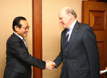 3月28日上午,國務院國資委副主任黃淑和會見了美國賽伯樂資產管理公司董事長、美國前財政部部長約翰·斯諾一行。黃淑和介紹了國資委的主要職能以及國資委成立以來中國國有企業改革與發展的情況。黃淑和指出,中國國有企業吸引國際戰略投資者的工作將遵循三個原則,一是要互利雙贏,二是要能為中國國有企業帶來先進的技術和管理經驗,三是雙方合作要著眼長遠。斯諾對中國國有企業改革近年來所取得的成績表示祝賀,并表示完全贊同黃淑和提出的雙方合作原則。斯諾表示,此次會談非常令人滿意,這為雙方將來的合作奠定了堅實的基礎。雙方還就租賃行業等其他共同感興趣的話題深入交換了意見。