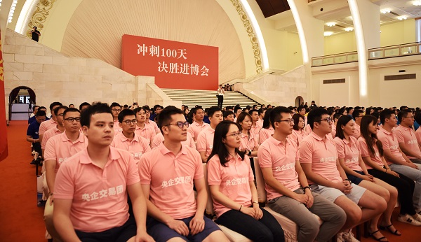 中央(yang)企業(ye)交易團(tuan)在(zai)大會上被授予(yu)“進口博(bo)覽會中央(yang)企業(ye)交易團(tuan)”旗幟,并鄭重承諾(nuo):牢記(ji)使(shi)命(ming)責任、不負(fu)國家重托,扎實開(kai)展工作、擴大進口成(cheng)交,奮力拼(pin)搏百(bai)日、奉獻央(yang)企精彩!首屆進博(bo)會,中央(yang)企業(ye)準(zhun)備(bei)好(hao)了!