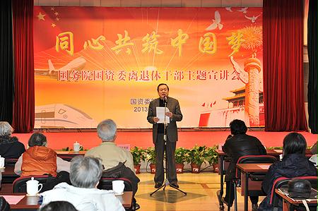 12月19日上午,管理局在國資委機關舉辦了國務院國資委離退休干部“同心共筑中國夢”主題宣講會。國資委黨委委員、副秘書長、管理局黨委書記杜淵泉出席宣講會并講話。管理局領導班子成員和全系統21個單位黨政主要負責同志、離退休干部、在職干部代表等180人參加了宣講會。宣講會上,來自各離退休干部局(辦)的12位老同志以他們的親身經歷和深刻感悟闡釋了他們對“中國夢”的理解和向往,表達了他們離崗不離黨、退休不褪色,積極支持國資國企改革發展工作,推動科學發展,促進社會和諧的心愿和決心。大會向全委離退休老同志發出倡議——凝心聚力,共同促成民族復興偉大中國夢的早日實現。