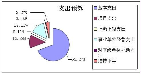 核定國務院(yuan)國資委(wei)2012年公共預算支(zhi)(zhi)出(chu)(chu)405,829.05萬(wan)元(yuan)(yuan)(含(han)財(cai)(cai)政撥(bo)款支(zhi)(zhi)出(chu)(chu)161,106.75萬(wan)元(yuan)(yuan)),其(qi)中基(ji)本支(zhi)(zhi)出(chu)(chu)281,133.87萬(wan)元(yuan)(yuan)(含(han)財(cai)(cai)政撥(bo)款112,894.34萬(wan)元(yuan)(yuan)),占69.27%;項目支(zhi)(zhi)出(chu)(chu)52,267.25萬(wan)元(yuan)(yuan)(含(han)財(cai)(cai)政撥(bo)款48,212.41萬(wan)元(yuan)(yuan)),占12.88%;上繳上級支(zhi)(zhi)出(chu)(chu)400.00萬(wan)元(yuan)(yuan),占0.11%;事業單位經營(ying)支(zhi)(zhi)出(chu)(chu)57,277.62萬(wan)元(yuan)(yuan),占14.11%;對下(xia)級單位補助支(zhi)(zhi)出(chu)(chu)1,480.00萬(wan)元(yuan)(yuan),占0.36%;結轉下(xia)年13,270.31萬(wan)元(yuan)(yuan),占3.27%。