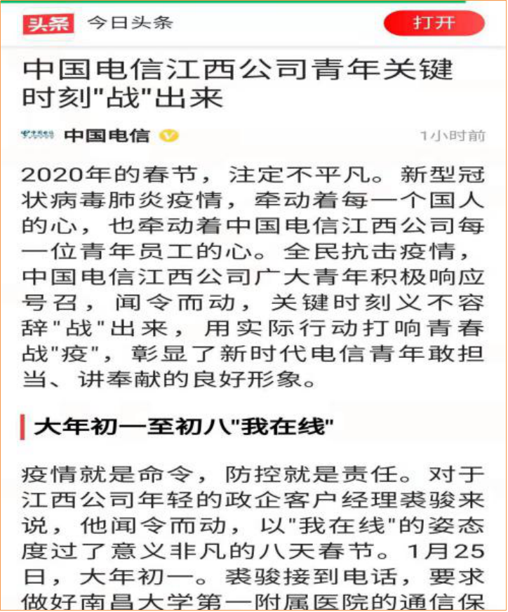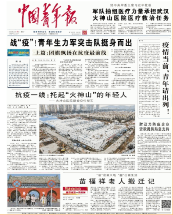 共青(qing)(qing)團中央(yang)、中國青(qing)(qing)年(nian)(nian)(nian)報、中國青(qing)(qing)年(nian)(nian)(nian)雜(za)志連續發布《倒計時!火(huo)神山夜戰沖(chong)刺(ci),青(qing)(qing)年(nian)(nian)(nian)突擊隊(dui)沖(chong)鋒》、《與時間賽跑、與疫(yi)情決戰“戰疫(yi)”一線:央(yang)企(qi)青(qing)(qing)年(nian)(nian)(nian)國家(jia)隊(dui)“逆行”而上》、《年(nian)(nian)(nian)輕的(de)逆行者(zhe):生命(ming)大(da)于(yu)一切,幸福(fu)不會(hui)推遲》等文章,對參與建設中的(de)央(yang)企(qi)青(qing)(qing)年(nian)(nian)(nian)事(shi)跡進行特(te)別報道,社會(hui)各界青(qing)(qing)年(nian)(nian)(nian)紛(fen)紛(fen)點贊。中央(yang)企(qi)業青(qing)(qing)年(nian)(nian)(nian)在重大(da)任務面前從不缺席(xi)!各企(qi)業團委組建的(de)疫(yi)情防控(kong)(kong)青(qing)(qing)年(nian)(nian)(nian)突擊隊(dui),做到(dao)(dao)了(le)“黨旗所指(zhi)就是團旗所向”,防控(kong)(kong)疫(yi)情舉措部署到(dao)(dao)哪(na)里,青(qing)(qing)年(nian)(nian)(nian)生力軍的(de)作用(yong)就發揮到(dao)(dao)哪(na)里!