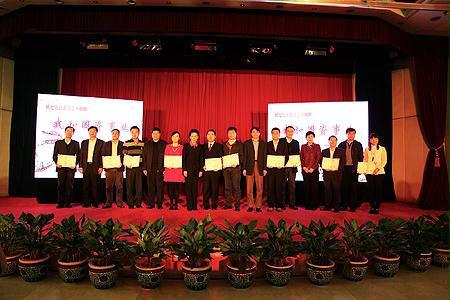領導(dao)為(wei)征(zheng)文一(yi)等(deng)獎作者頒獎