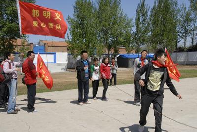 穿過重重煙霧(wu),沿著唯一一條(tiao)通(tong)向學(xue)校的(de)泥(ni)濘(ning)公(gong)路來(lai)到(dao)(dao)三河市段甲嶺鎮蔣福山(shan)小學(xue)。這(zhe)里交通(tong)閉塞,環境污染嚴(yan)重,經濟落后,但是這(zhe)些都沒有(you)使這(zhe)里的(de)孩(hai)(hai)子(zi)們(men)(men)放棄求學(xue)的(de)欲望,反而激發(fa)起了大家(jia)更強(qiang)烈的(de)學(xue)習熱(re)情(qing)和(he)改變家(jia)鄉的(de)愿望。看到(dao)(dao)150多(duo)個孩(hai)(hai)子(zi)稚(zhi)嫩、純樸、可愛的(de)笑臉,志愿者們(men)(men)心情(qing)非常激動,紛紛把帶來(lai)的(de)學(xue)習用品和(he)體育用品送到(dao)(dao)孩(hai)(hai)子(zi)們(men)(men)手中。隨(sui)后,大家(jia)來(lai)到(dao)(dao)課堂(tang)上,為孩(hai)(hai)子(zi)們(men)(men)傳授科(ke)學(xue)文化(hua)知識,回答孩(hai)(hai)子(zi)們(men)(men)提出(chu)的(de)問題,鼓(gu)勵他們(men)(men)熱(re)愛學(xue)習,要努力學(xue)習科(ke)學(xue)文化(hua)知識,做一個勇敢、堅強(qiang)、有(you)益于社(she)(she)會(hui)的(de)人。志愿者們(men)(men)在表演了自編的(de)節目后,又來(lai)到(dao)(dao)操(cao)場上,和(he)孩(hai)(hai)子(zi)們(men)(men)共同(tong)做游戲,并植下了愛心樹,祝愿孩(hai)(hai)子(zi)們(men)(men)能在社(she)(she)會(hui)各(ge)界愛心人士的(de)幫助(zhu)下和(he)關心下茁壯(zhuang)成長,將來(lai)成為社(she)(she)會(hui)主義合(he)格的(de)建設者和(he)接班人。