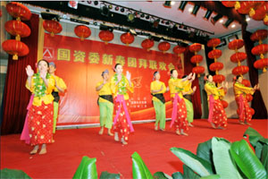 團(tuan)拜會(hui)上還舉(ju)行(xing)了(le)(le)文藝聯(lian)歡(huan)(huan)。文藝聯(lian)歡(huan)(huan)由2009年新錄公務(wu)(wu)員表演(yan)(yan)的(de)(de)(de)(de)(de)舞蹈《西(xi)班牙斗牛風情》和機(ji)(ji)關(guan)各廳(ting)局(ju)自撰的(de)(de)(de)(de)(de)春聯(lian)展(zhan)示(shi)拉開序幕,在(zai)《舉(ju)杯吧,朋(peng)友》的(de)(de)(de)(de)(de)歡(huan)(huan)快樂(le)曲(qu)中(zhong)結束。整(zheng)個文藝聯(lian)歡(huan)(huan)以機(ji)(ji)關(guan)廳(ting)局(ju)結合本(ben)單(dan)(dan)位業務(wu)(wu)工(gong)(gong)作撰寫的(de)(de)(de)(de)(de)春聯(lian)展(zhan)示(shi)為(wei)(wei)主(zhu)線(xian),從不(bu)(bu)同(tong)的(de)(de)(de)(de)(de)側面回顧(gu)過去一年在(zai)黨中(zhong)央國(guo)(guo)務(wu)(wu)院的(de)(de)(de)(de)(de)堅(jian)(jian)強領導下,國(guo)(guo)資(zi)(zi)委與(yu)中(zhong)央企(qi)業同(tong)舟共濟(ji)應對國(guo)(guo)際金融(rong)危機(ji)(ji),保持國(guo)(guo)民經(jing)濟(ji)平穩較(jiao)快發展(zhan)取得的(de)(de)(de)(de)(de)可喜成(cheng)績;謳歌在(zai)建設中(zhong)國(guo)(guo)特色社(she)會(hui)主(zhu)義偉(wei)大(da)(da)進程中(zhong),國(guo)(guo)資(zi)(zi)委直屬機(ji)(ji)關(guan)干部(bu)(bu)職(zhi)(zhi)工(gong)(gong)和中(zhong)央企(qi)業所(suo)表現出(chu)來的(de)(de)(de)(de)(de)時代精神;抒發直屬機(ji)(ji)關(guan)廣(guang)大(da)(da)干部(bu)(bu)職(zhi)(zhi)工(gong)(gong)堅(jian)(jian)持解(jie)放思想(xiang)、堅(jian)(jian)持改革開放,為(wei)(wei)推(tui)(tui)進國(guo)(guo)有經(jing)濟(ji)發展(zhan)、建設社(she)會(hui)主(zhu)義和諧社(she)會(hui)和促進本(ben)單(dan)(dan)位全面建設貢獻(xian)智慧和力量的(de)(de)(de)(de)(de)誠摯(zhi)感情;表達了(le)(le)國(guo)(guo)資(zi)(zi)委機(ji)(ji)關(guan)廣(guang)大(da)(da)干部(bu)(bu)職(zhi)(zhi)工(gong)(gong),堅(jian)(jian)定理想(xiang)信(xin)念,為(wei)(wei)推(tui)(tui)進國(guo)(guo)有資(zi)(zi)產監督管理體(ti)制改革和中(zhong)央企(qi)業改革發展(zhan)努力奮斗的(de)(de)(de)(de)(de)堅(jian)(jian)強決心(xin)(xin)和堅(jian)(jian)定信(xin)心(xin)(xin)。整(zheng)個演(yan)(yan)出(chu)高潮迭起,異(yi)彩紛呈(cheng),令人(ren)目不(bu)(bu)暇接。文藝演(yan)(yan)出(chu)中(zhong)還進行(xing)了(le)(le)抽獎(jiang)活(huo)動。
