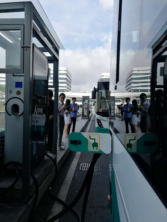 電動(dong)公交(jiao)車(che)在(zai)港(gang)珠澳大橋人工島充電