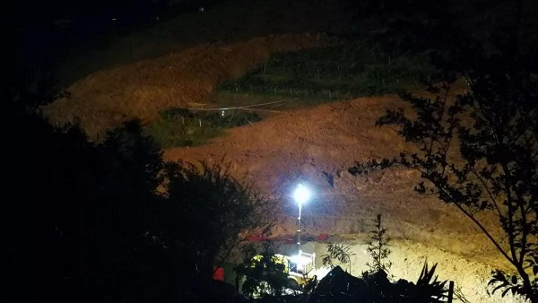 7月24日晚,10米高的燈塔繼續照亮救援現場,搜救工作有序進行