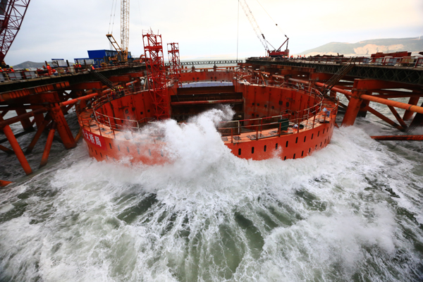 “每次(ci)一來(lai)臺(tai)(tai)風(feng),就要(yao)(yao)對大(da)(da)大(da)(da)小小的設(she)備和物資(zi)搬(ban)家(jia)。2014年(nian)(nian)、2015年(nian)(nian)臺(tai)(tai)風(feng)頻(pin)繁,項目部提(ti)前(qian)監測(ce)到有臺(tai)(tai)風(feng)來(lai)或(huo)過境,就要(yao)(yao)提(ti)前(qian)考慮到每一道工序(xu),提(ti)前(qian)做(zuo)好撤(che)離(li)準備,大(da)(da)件設(she)備在平臺(tai)(tai)上(shang)放趴下,小型設(she)備、運(yun)(yun)送物資(zi)的船只、人員等都遷移到避風(feng)港。等臺(tai)(tai)風(feng)過去,再將設(she)備一一運(yun)(yun)回到位(wei)。臺(tai)(tai)風(feng)來(lai)一天,對我們施工影響得整整一周甚至更長。”中鐵大(da)(da)橋局集團(tuan)有限公司副(fu)總經理(li)張紅心說。