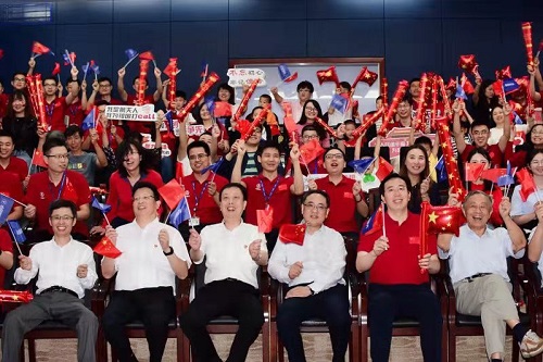 中廣核大亞灣基地員工(gong)和家屬共(gong)同歡(huan)慶搖(yao)旗吶喊