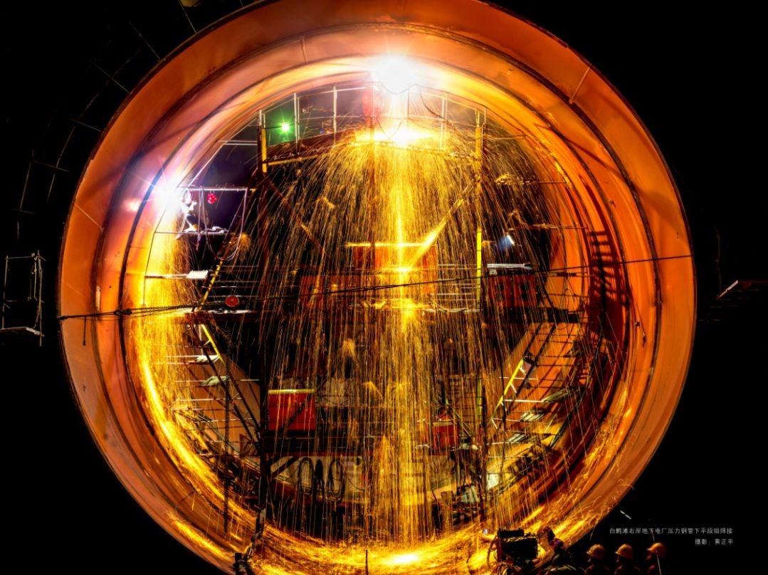 白鶴灘水電站右岸地下電站壓力鋼管平段組焊接。(黃正平 攝)