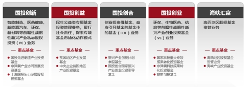 國有資本投資公司擔負著產業培育使命,近年來國投創新投融資方式,將股權投資基金作為培育發展戰略性新興產業的有效途徑,通過控股投資和基金投資融合聯動,加快推進國有資本向戰略性新興產業集中,著力培育新技術、新產業、新業態,形成新動能。2004年,與財政部、比利時政府等共同設立1億歐元的中國-比利時直接股權投資基金;2009年,組建了創新基金、協力基金。經過十多年發展,目前擁有國投創新、國投創業、國投創合、國投創益等6家基金管理公司,形成了覆蓋風險投資、私募股權投資、母基金、政策性專項基金等不同類別的基金業務,涵蓋企業孵化-培育-成長-成熟的全生命周期,國投系基金在市場上形成了一定的影響力。