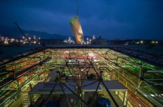 2月29日,主(zhu)廠(chang)(chang)房設(she)(she)備基(ji)礎澆筑完成,項目建(jian)設(she)(she)轉(zhuan)入設(she)(she)備安裝階段。成套(tao)設(she)(she)備廠(chang)(chang)房內,地下有管道作(zuo)業(ye)、地面有土建(jian)作(zuo)業(ye)、平臺上有大型設(she)(she)備安裝、空中進(jin)行(xing)著跨地塊吊裝、桁架上還進(jin)行(xing)防腐和(he)內裝修施工(gong)……600名參建(jian)人員輪番上陣,工(gong)程進(jin)展全程受控(kong),一天(tian)完成正常情況(kuang)下3天(tian)到5天(tian)的(de)作(zuo)業(ye)量。