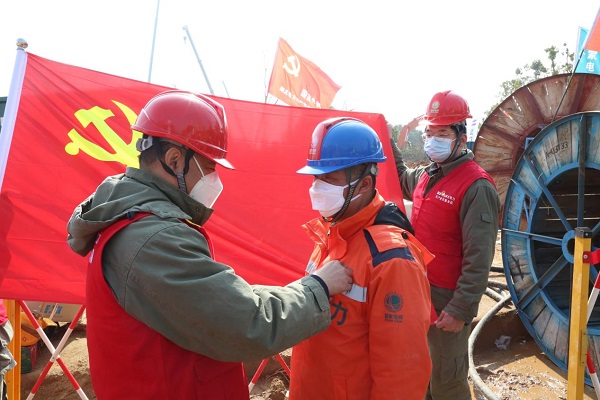 葉暉同志宣誓后,國網武漢供電公(gong)司黨(dang)委領導為(wei)他佩戴黨(dang)徽
