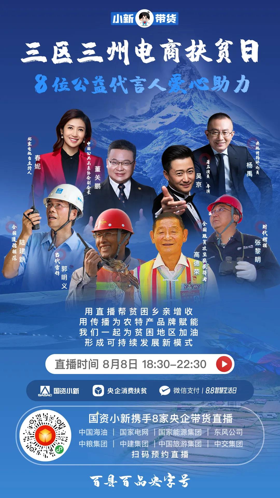 “百縣百品(pin)央(yang)字號”暨“小新帶(dai)(dai)貨(huo)”風生(sheng)水(shui)起的背(bei)后,是國務院(yuan)(yuan)國資委(wei)力(li)推(tui)央(yang)企消(xiao)費扶(fu)(fu)貧(pin)(pin)(pin)(pin)的堅定決心(xin)和有(you)(you)效(xiao)舉(ju)措。今年以(yi)來(lai),國務院(yuan)(yuan)國資委(wei)組織開展(zhan)中央(yang)企業(ye)(ye)消(xiao)費扶(fu)(fu)貧(pin)(pin)(pin)(pin)專項(xiang)行動(dong),著(zhu)力(li)幫(bang)助解決貧(pin)(pin)(pin)(pin)困地區(qu)農產(chan)(chan)品(pin)滯銷(xiao)的突出困難。5月12日(ri),國務院(yuan)(yuan)國資委(wei)央(yang)企消(xiao)費扶(fu)(fu)貧(pin)(pin)(pin)(pin)電(dian)(dian)(dian)商(shang)(shang)(shang)平臺(tai)正式上線(xian),為貧(pin)(pin)(pin)(pin)困縣農產(chan)(chan)品(pin)提供穩定持(chi)續、輻(fu)射面(mian)廣的電(dian)(dian)(dian)商(shang)(shang)(shang)銷(xiao)售渠道。在“‘三(san)(san)區(qu)三(san)(san)州(zhou)’電(dian)(dian)(dian)商(shang)(shang)(shang)扶(fu)(fu)貧(pin)(pin)(pin)(pin)日(ri)”的直播帶(dai)(dai)貨(huo)現場(chang),中央(yang)企業(ye)(ye)電(dian)(dian)(dian)商(shang)(shang)(shang)聯盟、中央(yang)企業(ye)(ye)媒體(ti)聯盟、騰訊微信面(mian)向所有(you)(you)中國企業(ye)(ye)和社(she)會各界發起《企業(ye)(ye)電(dian)(dian)(dian)商(shang)(shang)(shang)扶(fu)(fu)貧(pin)(pin)(pin)(pin)“三(san)(san)區(qu)三(san)(san)州(zhou)”倡議書》:充分(fen)發揮中國企業(ye)(ye)的市場(chang)主體(ti)作(zuo)用(yong),助力(li)“三(san)(san)區(qu)三(san)(san)州(zhou)”開展(zhan)產(chan)(chan)業(ye)(ye)扶(fu)(fu)貧(pin)(pin)(pin)(pin)、增加有(you)(you)效(xiao)供給,培(pei)育內生(sheng)動(dong)力(li),推(tui)進可持(chi)續發展(zhan);充分(fen)發揮電(dian)(dian)(dian)商(shang)(shang)(shang)平臺(tai)的引領(ling)帶(dai)(dai)動(dong)作(zuo)用(yong),助力(li)“三(san)(san)區(qu)三(san)(san)州(zhou)”開拓線(xian)上渠道、培(pei)訓電(dian)(dian)(dian)商(shang)(shang)(shang)人才,產(chan)(chan)銷(xiao)結合、以(yi)銷(xiao)促(cu)產(chan)(chan),讓特(te)色產(chan)(chan)品(pin)對接更大(da)線(xian)上市場(chang),讓電(dian)(dian)(dian)商(shang)(shang)(shang)扶(fu)(fu)貧(pin)(pin)(pin)(pin)惠及(ji)更多貧(pin)(pin)(pin)(pin)困群眾。