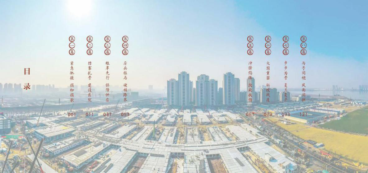 《中央(yang)企業(ye)戰疫(yi)圖(tu)(tu)鑒》內(nei)容分(fen)為8個部分(fen),分(fen)別是:“緊急馳援 捐(juan)物捐(juan)款”“結寨扎營(ying) 建設醫院”“糧(liang)草先(xian)行 保障供應”“厲(li)兵秣馬 硬核(he)跨界”“沖鋒陷陣(zhen) 救死(si)扶傷(shang)”“大國重(zhong)器 科(ke)技戰疫(yi)”“步步為營(ying) 復(fu)工復(fu)產”“與(yu)子(zi)同袍 風雨同擔(dan)”。這些圖(tu)(tu)片大部分(fen)來(lai)自(zi)央(yang)企抗(kang)擊疫(yi)情一線、反映抗(kang)疫(yi)斗爭的(de)真(zhen)實圖(tu)(tu)景(jing),主題鮮明、特色突出、真(zhen)實生動(dong),以(yi)第一視角展現(xian)央(yang)企戰疫(yi)和復(fu)工復(fu)產一線環境之(zhi)艱苦、任務(wu)之(zhi)艱巨、精神之(zhi)崇高,充滿(man)現(xian)場感(gan)、既視感(gan)。