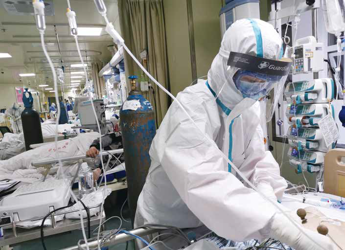 1月26日—3月10日,通用技術集團環球醫療鞍鋼總醫院重癥醫學科護士金鈺在協和江北醫院ICU 病房執行救治任務 (王洪波 攝)