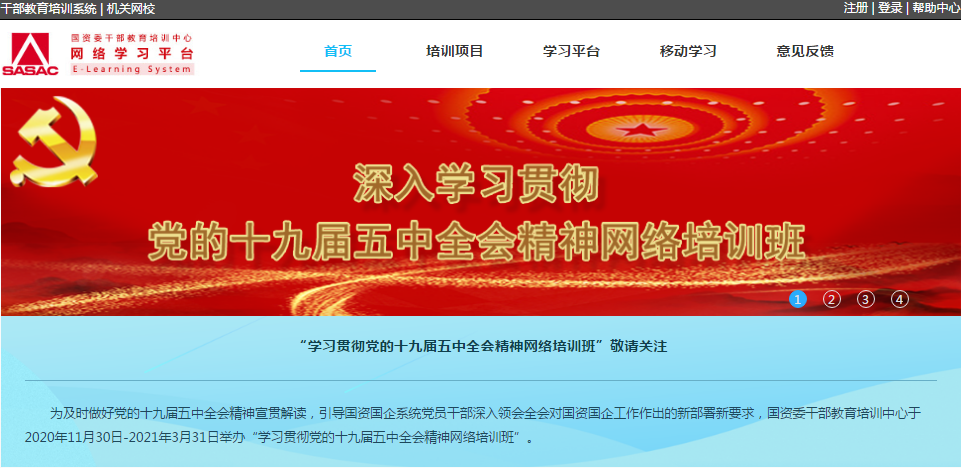為及時(shi)廣泛做好(hao)黨的十(shi)九屆(jie)五(wu)(wu)中全(quan)會精神(shen)宣貫解讀,進一(yi)步有(you)效引導(dao)國(guo)(guo)資(zi)(zi)國(guo)(guo)企系統(tong)各層級干部職工把思想和(he)行動統(tong)一(yi)到全(quan)會精神(shen)上(shang)來,國(guo)(guo)資(zi)(zi)委干部教(jiao)育培(pei)訓(xun)中心于2020年11月30日-2021年3月31日舉辦(ban)“學(xue)習貫徹黨的十(shi)九屆(jie)五(wu)(wu)中全(quan)會精神(shen)網絡培(pei)訓(xun)班”。