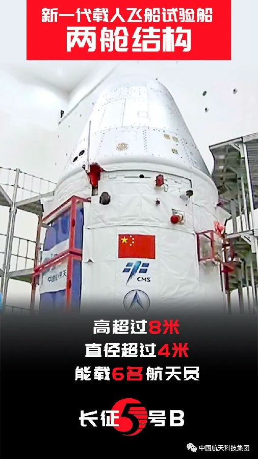 雖說(shuo)主要任(ren)務是建設空(kong)間站,但(dan)(dan)長五B首次(ci)飛(fei)(fei)行(xing)的(de)乘客并不是空(kong)間站艙段,而(er)是新一(yi)代載(zai)人(ren)飛(fei)(fei)船試驗船。我國“神(shen)(shen)舟”系列(lie)飛(fei)(fei)船已送11名航天(tian)員(14人(ren)次(ci))往返(fan)近地軌道,但(dan)(dan)每次(ci)只能(neng)載(zai)3名航天(tian)員, 而(er)新飛(fei)(fei)船最大載(zai)客量將翻倍,這(zhe)得益于新飛(fei)(fei)船在結構等方面的(de)優化。新飛(fei)(fei)船與“神(shen)(shen)舟”飛(fei)(fei)船同樣高8米(mi)多,但(dan)(dan)腰圍比神(shen)(shen)舟“胖了”一(yi)圈,直徑(jing)從不到(dao)3米(mi)漲到(dao)了4米(mi)多,神(shen)(shen)舟飛(fei)(fei)船的(de)軌道、返(fan)回、服務三艙也被優化整合為返(fan)回、服務兩艙,航天(tian)員工作、生活的(de)條件也更舒(shu)適。