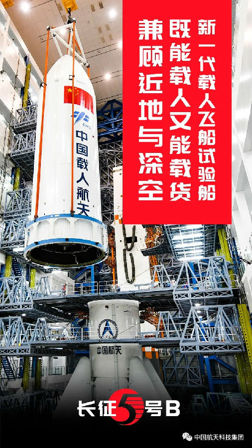 他(ta)來了,他(ta)來了,他(ta)帶著新飛(fei)船試驗船來了!他(ta),就是大火(huo)箭長征五號(hao)的兄弟——長征五號(hao)B。