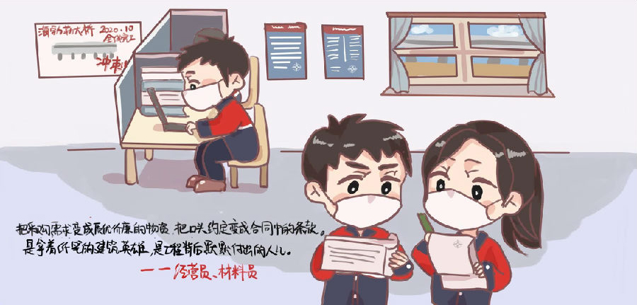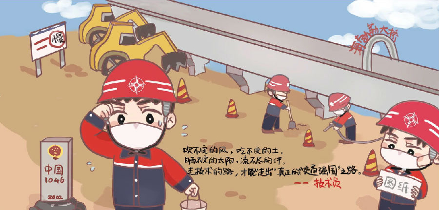 在祖國北疆,珠恩嘎達布其(qi)口岸,中蒙(meng)邊(bian)境1046號界(jie)碑中國側(ce),在烏珠公路海渤勒(le)大橋施工一線,有這(zhe)樣一群中交集團建設者(zhe),他(ta)們(men)戰風(feng)沙,斗(dou)暑(shu)寒,用執(zhi)著(zhu)和(he)青春勾(gou)勒(le)出國門最美風(feng)景線。讓我(wo)們(men)來(lai)通過一幅小漫畫(hua),認識這(zhe)些可愛的建設者(zhe)們(men)吧。
