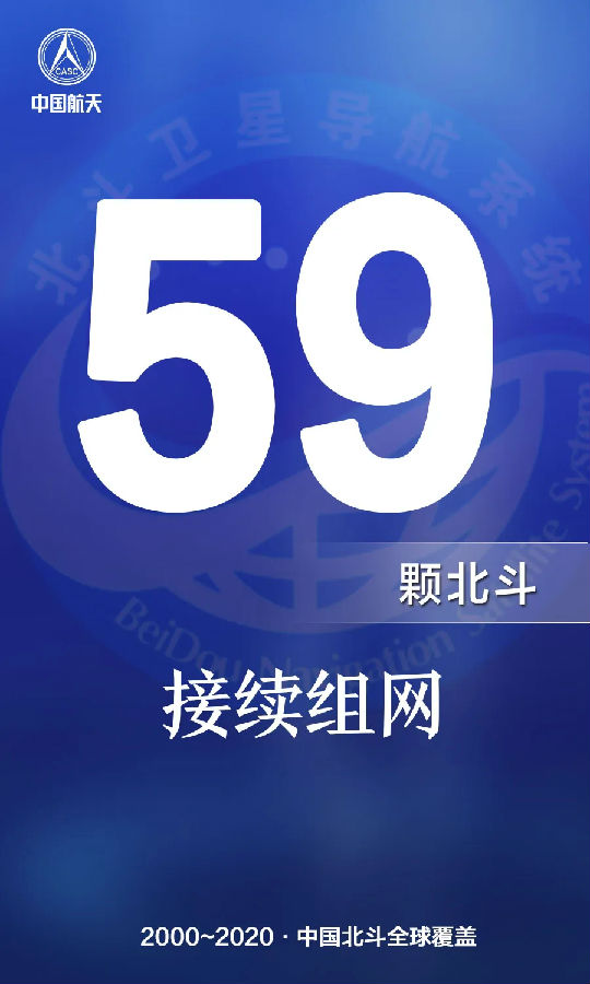 2020年6月23日,中國(guo)(guo)北(bei)(bei)斗(dou)(dou)衛星(xing)導(dao)(dao)航(hang)(hang)(hang)系統全球組網階段(duan)收官星(xing)發射圓滿(man)成功。20年來,中國(guo)(guo)航(hang)(hang)(hang)天科技集團有限(xian)公司成功發射了59顆北(bei)(bei)斗(dou)(dou)衛星(xing)(4顆北(bei)(bei)斗(dou)(dou)試驗導(dao)(dao)航(hang)(hang)(hang)衛星(xing)、55顆北(bei)(bei)斗(dou)(dou)導(dao)(dao)航(hang)(hang)(hang)衛星(xing)),在太空布局中國(guo)(guo)導(dao)(dao)航(hang)(hang)(hang)星(xing)座。