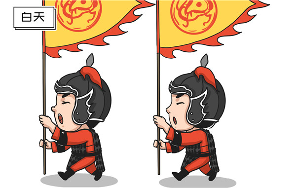 白天,旌旗招展,黃昏(hun),鑼鼓喧天,晚上看(kan)不見的時(shi)候,來個(ge)(ge)火(huo)(huo)把,每(mei)個(ge)(ge)時(shi)候都有(you)明顯的標示(shi),這就是(shi)古人說的:“晝則(ze)多旌,夜則(ze)多火(huo)(huo),暝冥多鼓,此善為設(she)施者也”。