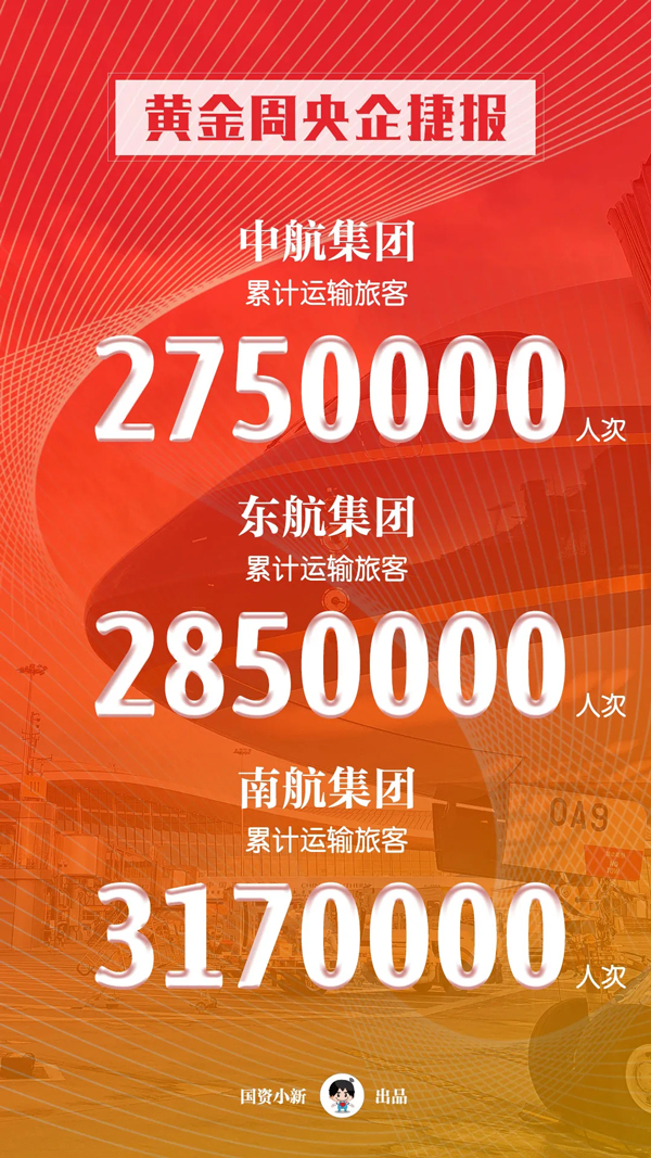 8天長假期(qi)間全國共接待國內游客6.37億人次,按(an)可比(bi)(bi)口(kou)徑同(tong)(tong)比(bi)(bi)恢復79.0%,實(shi)現國內旅游收入4665.6億元,按(an)可比(bi)(bi)口(kou)徑同(tong)(tong)比(bi)(bi)恢復69.9%。作為國民經(jing)濟(ji)重要支柱(zhu)的中央(yang)企(qi)業,是(shi)假期(qi)消(xiao)費旺(wang)、經(jing)濟(ji)暖的注腳,是(shi)假日經(jing)濟(ji)的服務保障。一起(qi)來看(kan)黃金周央(yang)企(qi)捷(jie)報(bao)——