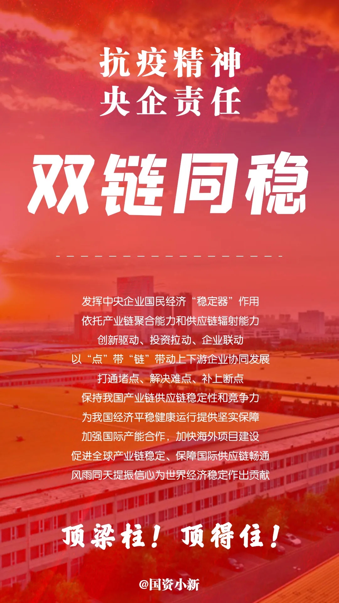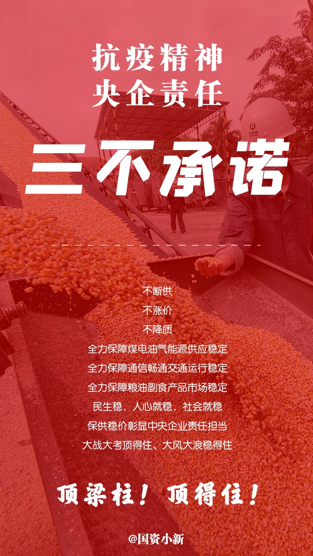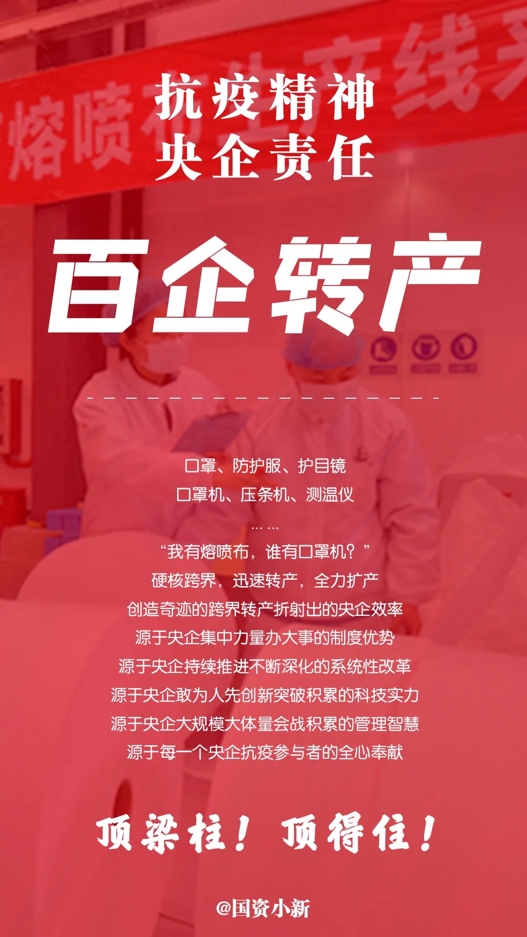 一苗當先,領先世界;兩山速度,創造奇(qi)跡;三不(bu)承諾,保供穩價;五降(jiang)擔當,全力保障;百企轉產(chan),硬核(he)跨界;雙鏈同穩,協(xie)同發(fa)展。數說央(yang)企抗疫精(jing)神,共同見證央(yang)企責(ze)任(ren)。