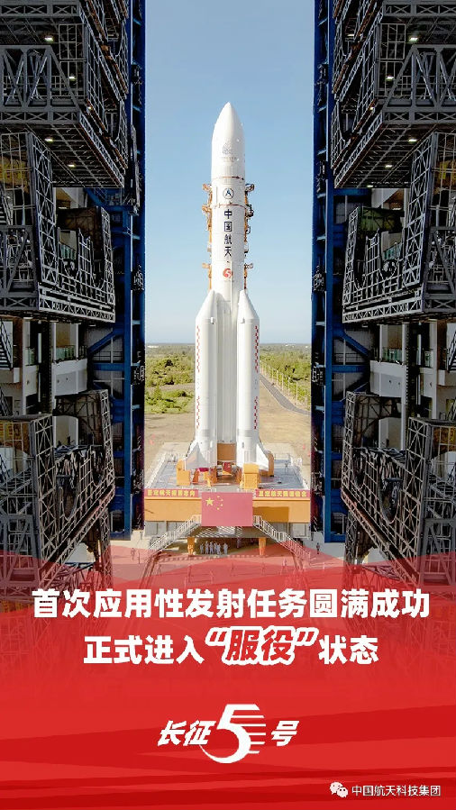 此次發射也是(shi)長五(wu)火(huo)箭的首次應(ying)用(yong)性(xing)發射,標(biao)志(zhi)著長五(wu)火(huo)箭正式進入“服役”狀態。
