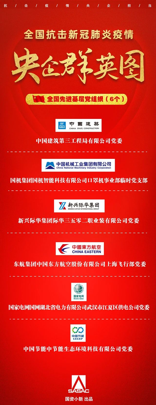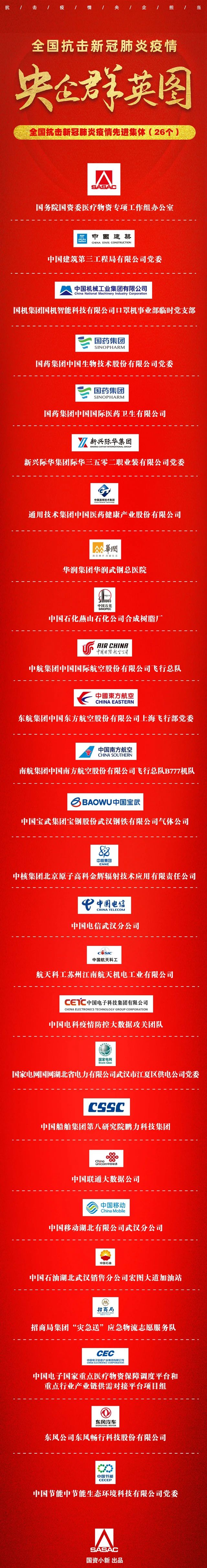央企群英圖!26個全國抗擊新冠肺炎疫情先進集體,6個全國先進基層黨組織!
