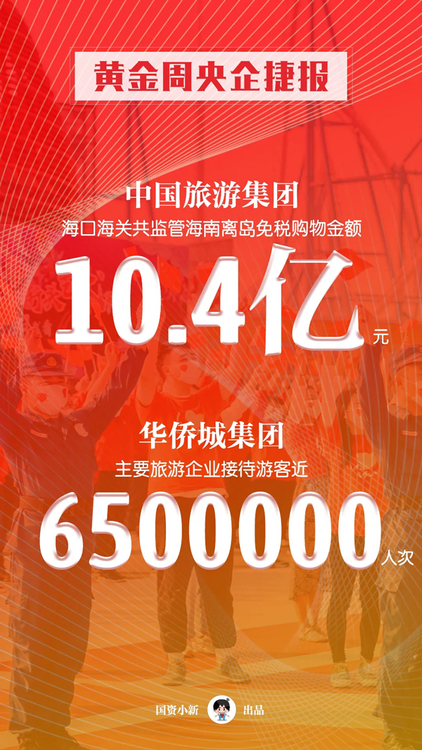 8天(tian)長(chang)假期間全國共接待國內(nei)游客(ke)6.37億人次(ci),按(an)可比(bi)(bi)口徑(jing)同比(bi)(bi)恢復79.0%,實(shi)現國內(nei)旅游收入4665.6億元,按(an)可比(bi)(bi)口徑(jing)同比(bi)(bi)恢復69.9%。作為(wei)國民經(jing)(jing)濟(ji)重要支柱的(de)(de)中央企(qi)業(ye),是假期消費旺、經(jing)(jing)濟(ji)暖的(de)(de)注腳,是假日經(jing)(jing)濟(ji)的(de)(de)服(fu)務(wu)保障。一起(qi)來看黃金周(zhou)央企(qi)捷報——