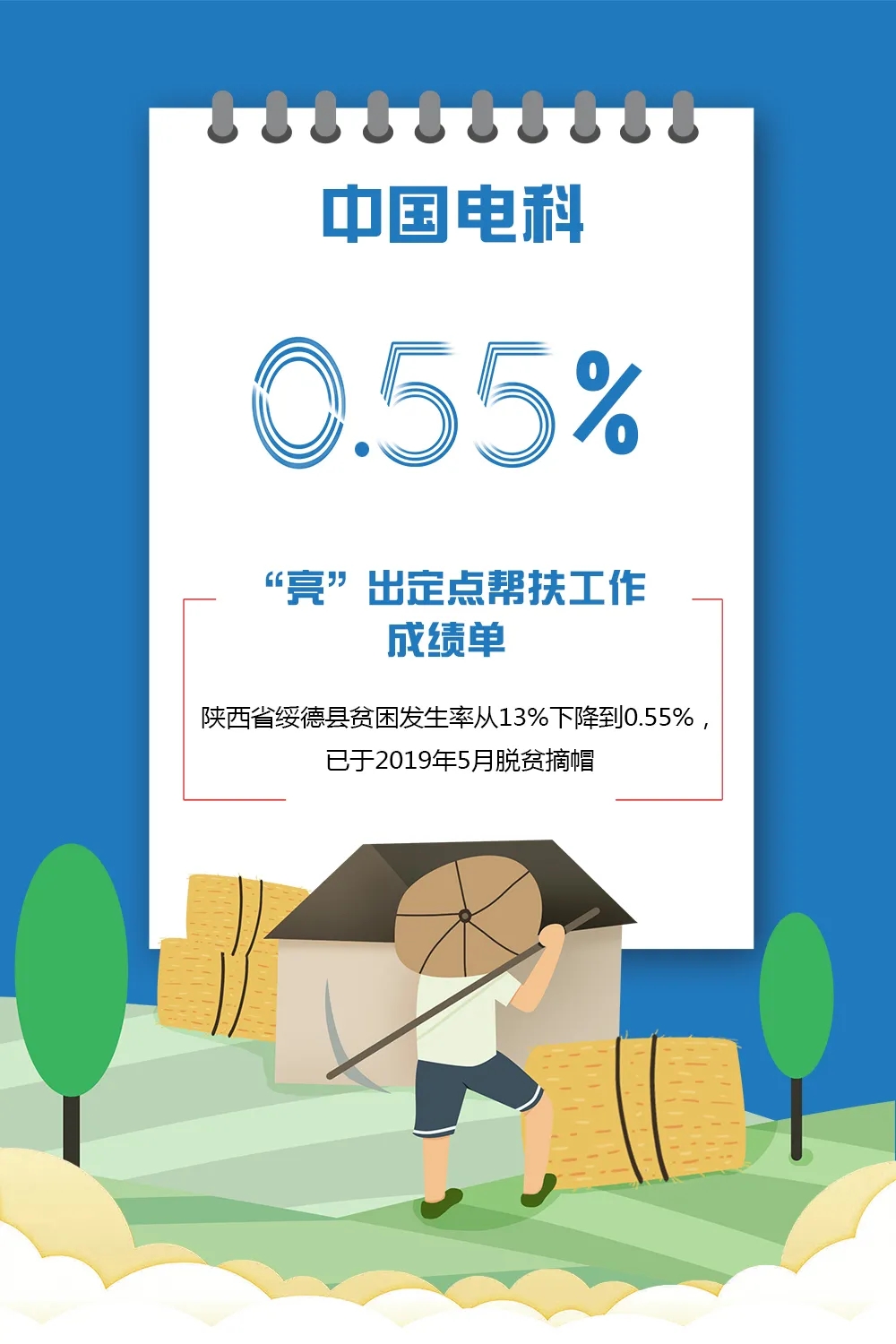 陜西(xi)省(sheng)綏德(de)縣貧(pin)(pin)困(kun)發生率(lv)從13%下(xia)降到0.55%,已于2019年5月脫貧(pin)(pin)摘(zhai)帽。