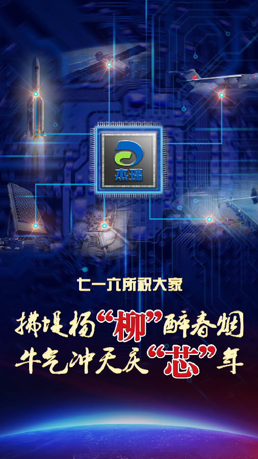 中(zhong)國船舶集團(tuan)旗(qi)下第七(qi)一六研究所設計的(de)海報以七(qi)一六所杰(jie)瑞芯(xin)產品(pin)為創作來源。十余年砥礪奮進,杰(jie)瑞芯(xin)已發展出包含GPU芯(xin)片(pian)、北斗(dou)(dou)定(ding)位(wei)導航核心芯(xin)片(pian)等在內的(de)一系列自主可控(kong)芯(xin)片(pian)產品(pin),廣泛(fan)應用于新(xin)型(xing)顯控(kong)設備(bei)、某新(xin)型(xing)雷達(da)、國產大(da)飛機(ji)、北斗(dou)(dou)導航、探月工程(cheng)(cheng)、新(xin)型(xing)精確制導彈(dan)藥等重大(da)工程(cheng)(cheng)及裝備(bei)。