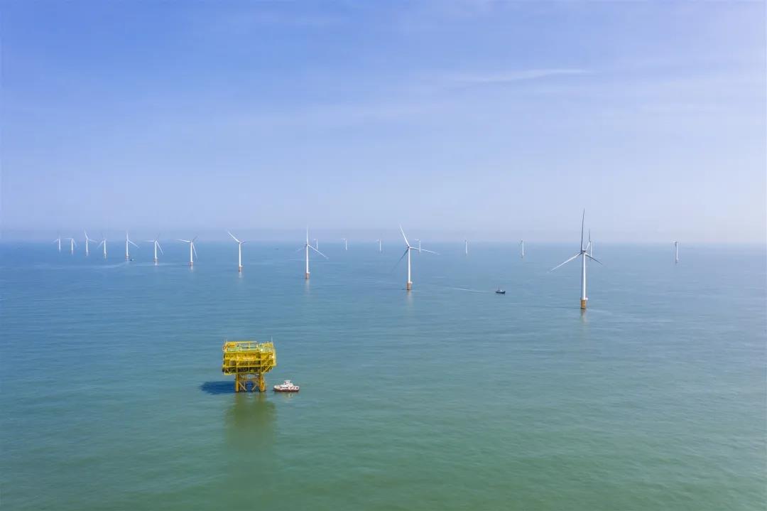 4月22日11點10分,廣東院EPC總承包建設的珠海金灣海上風電場,碧藍的海面上綴起了一串清潔能源的明珠。