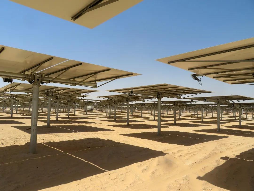 當地時間4月22日13時,湖南火電參建的迪拜950兆瓦光熱光伏混合電站項目定日鏡場。