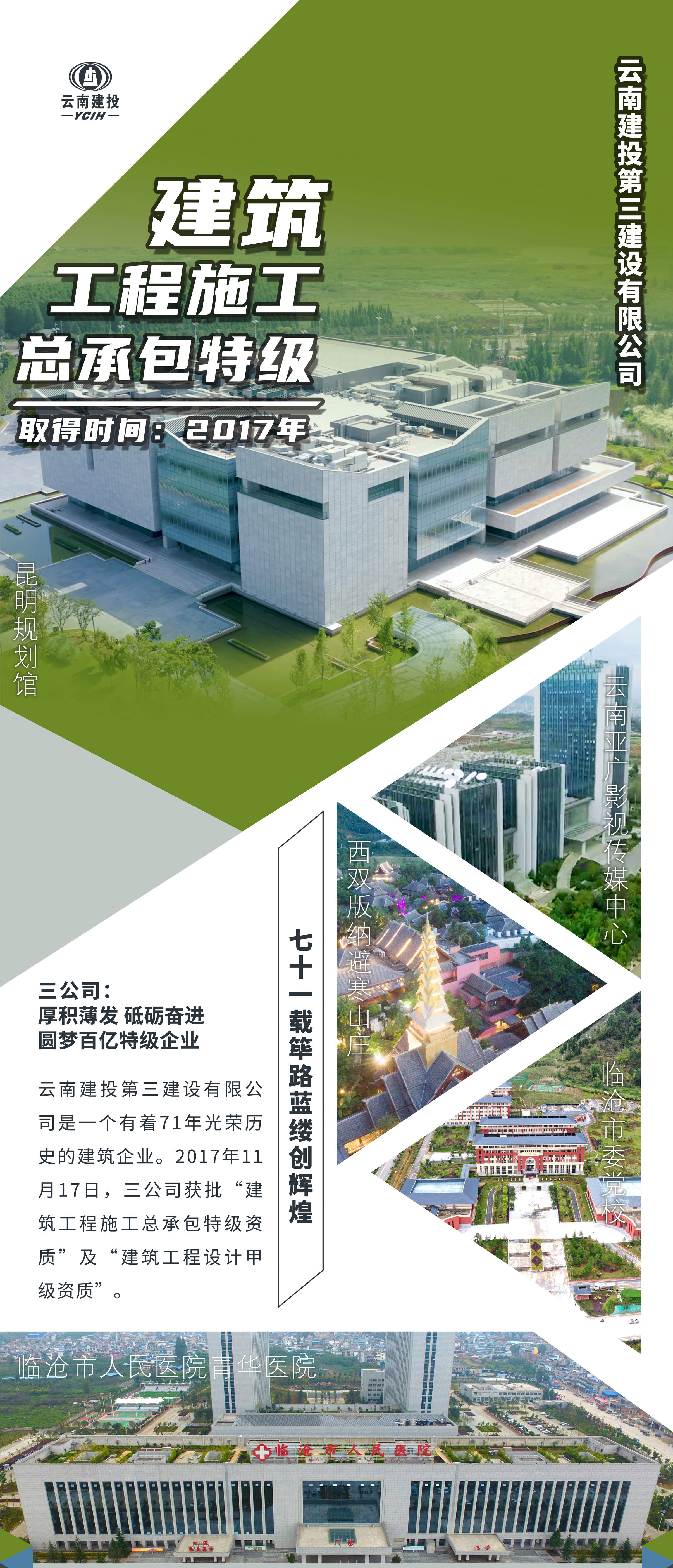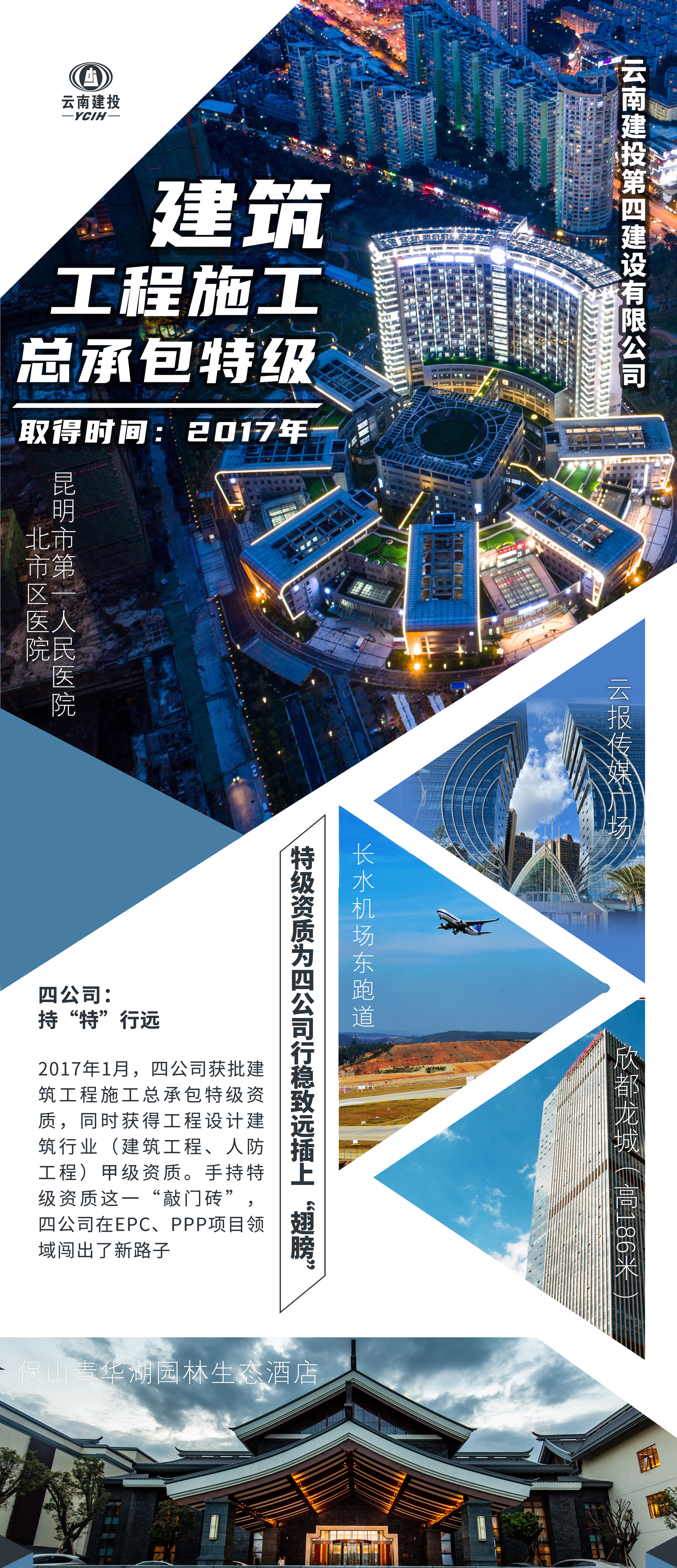 近年來,云南建(jian)投集(ji)團(tuan)持續提高資質(zhi)整體實力,有序規劃各單位資質(zhi)發展目標,資質(zhi)類(lei)別全方位擴(kuo)充,資質(zhi)等級持續提升(sheng)。目前集(ji)團(tuan)擁有各類(lei)資質(zhi)781項(xiang),有8家公司邁(mai)入特級企業行列,共計擁有10項(xiang)特級資質(zhi),覆(fu)蓋建(jian)筑(zhu)工程(cheng)、公路工程(cheng)、市政公用工程(cheng)和水(shui)利水(shui)電工程(cheng)領域。