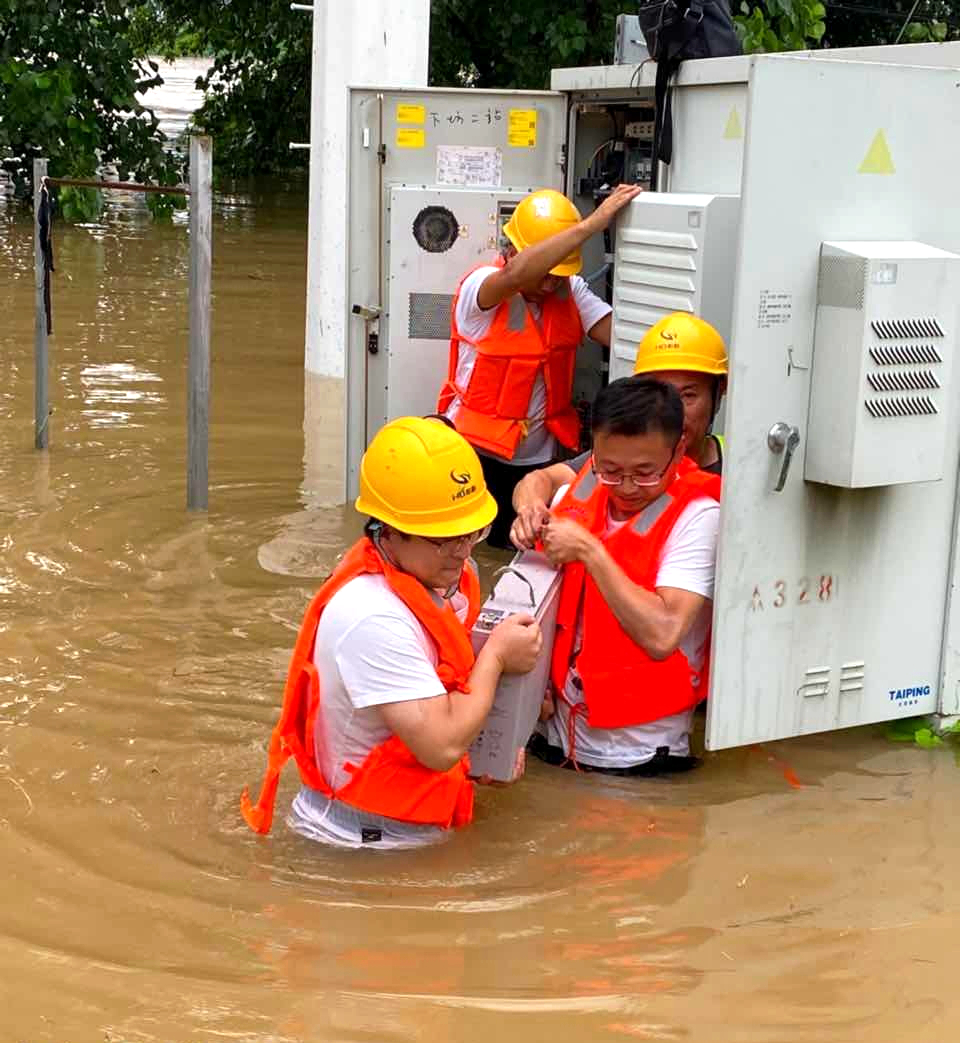 7月5日至6日,安徽涇縣連續降雨,陳村水庫泄洪致下游水位上升,下坊基站被水淹,涇縣網絡部戴雷緊急帶領維護人員來到現場,主動下水搬運基站和傳輸設備,保護通信財產不受損失,確保水退后快速開通基站恢復通信。