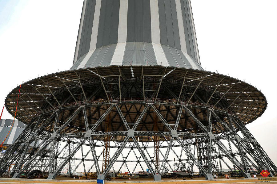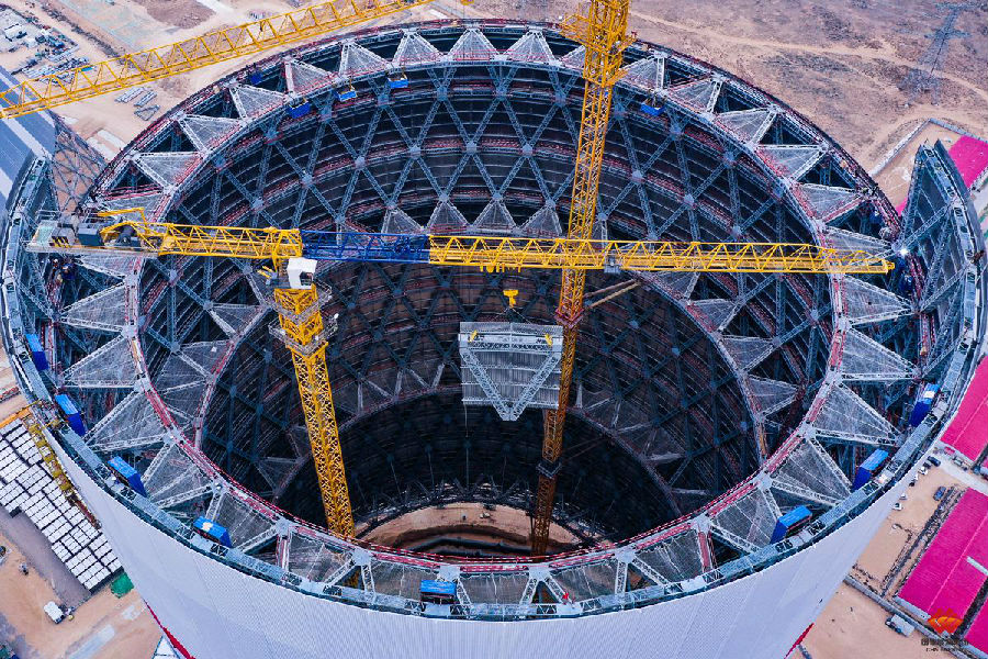 2021年1月(yue)15日(ri),國家(jia)能源集(ji)團(tuan)國電上海廟項目間接空冷系(xi)統1號冷卻塔(ta)(ta)順(shun)利結(jie)(jie)頂。該塔(ta)(ta)是全國首個采用(yong)鋼結(jie)(jie)構的(de)百萬(wan)千瓦(wa)級(ji)機組冷卻塔(ta)(ta)。下面來一起回顧“巨無(wu)霸”鋼結(jie)(jie)構冷卻塔(ta)(ta)結(jie)(jie)頂精彩(cai)瞬間。